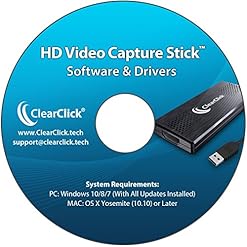 The HD Video Capture Stick records video in 720p or 1080p at 30 FPS in MP4 or MOV formats. Full 1-year warranty & free USA tech support from ClearClick included!