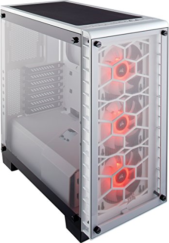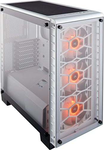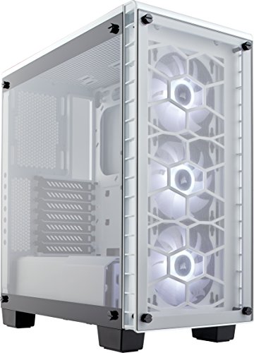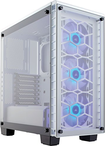 CORSAIR Crystal 460X RGB Compact Mid-Tower Case, 3 RGB Fans, Tempered Glass – White