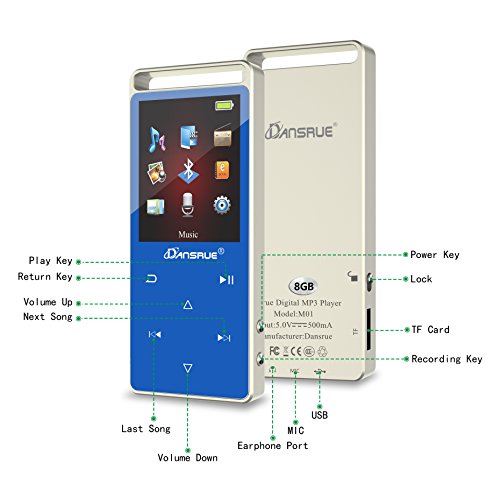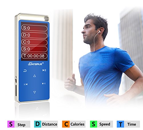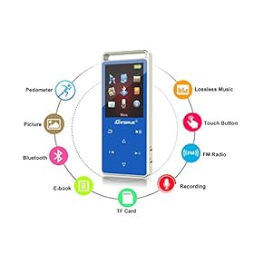 Multi-functional: Dansrue M01 MP3 player not only designed with music play, but also support time screen-saver, one button to lock, voice record, A-B repeat, FM radio, resume playback, video, E-book(Support TXT Format Only). The smart Touch buttons and high-quality music playback make it the best choice for music fans; sport, fitness, running, traveling ect.