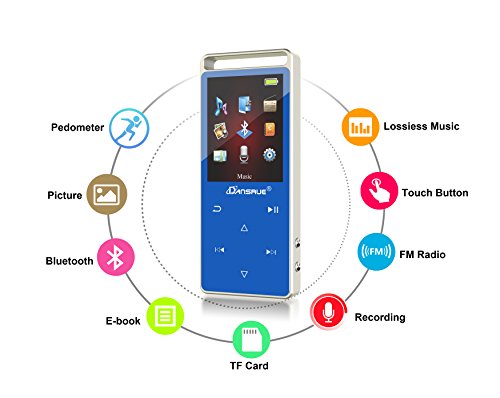 Dansrue Bluetooth MP3 Player 8 GB, Hi-Fi Lossless Sound Metal Music Player with FM Radio/Voice Recorder/E-Book, Touch Button and 1.8 Inch TFT Screen