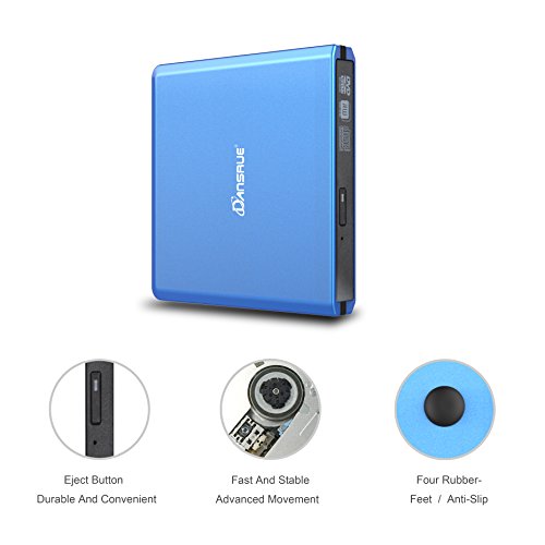 Dansrue USB 3.0 External CD DVD Drive, Portable Ultra-Slim CD DVD-RW Rewriter Burner Superdrive for Laptop Apple Mac MacBook Pro PC Windows Vista Linux