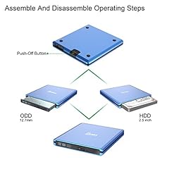 【Portable Convenient Design】 Lightweight body makes it easy to carry anywhere; Easy to assemble, push out the ODD or HDD through a button, make ODD and HDD interchange conveniently.