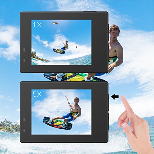 DBPOWER Action Cam with 5X Zoom: This 4K actiion camera with a good zoom range from 1.0X to 5.0X by long pressing the “UP” and “DOWN” button. And Electronic image stabilization also helps correct the traditionally shaky video common to pocket cameras.