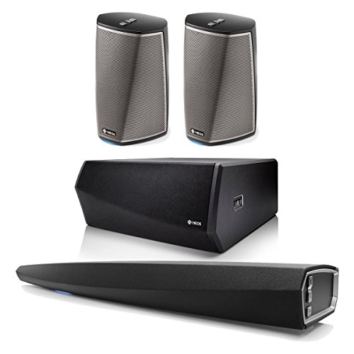 Denon HEOS 5.1 Channel Speaker System with Wireless Soundbar, Subwoofer, and HEOS1 Speakers – Pair (Black)