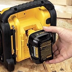ABLE TO BE POWERED BY 18V NICD LI-ION, 12V MAX OR 20V MAX DEWALTR POWER TOOL BATTERIESAC DC POWER ALLOWING THE FLEXIBILITY TO BE POWERED BY AC POWER CORD OR DEWALTR POWER TOOL BATTERIES DEVICE STORAGE BOX PROTECTS DIGITAL AUDIO DEVICES FROM JOBSITE DEBRIS amp;amp; DAMAGE USB POWER PORT ALLOWS DEVICE TO BE CHARGED VIA USB WHEN RADIO IS PLUGGED INTO AC WALL OUTLET 3.5MM AUX INPUT ALLOWS FOR CONNECTION TO CD, MP3, SATELLITE RECEIVERS amp;amp; OTHER DIGITAL AUDIO DEVICES HEAVY-DUTY DESIGN WITH ROLL CAGE INCREASES DURABILITY TO WITHSTAND JOBSITE CONDITIONS DOES NOT INCLUDE CHARGERINCLUDES AUX ICABLE