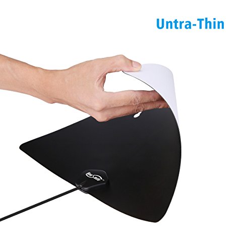 ★【ULTEA THIN】Paper-thin design makes free digital tv antenna easy to lay flat on table, hide it at the back of the TV, or stick it high on window.