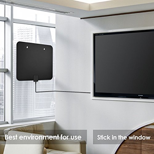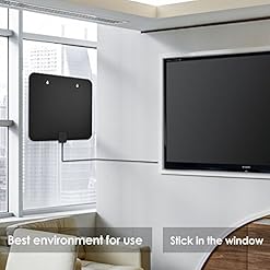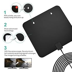 ALUMINUM FOIL MATERIAL: TV antenna for digital TV indoor can be suspended flexible movement.This material provides the antenna a stronger ability of getting signal compared to other materials.We adopt upgraded crystal clear filter technology to picks up signals within a 60 miles range, and it filters out cellular and FM signals resulting in clearer picture, low noise and access to more broadcast TV signals.