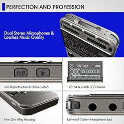 ♪ PROFESSIONAL AND POWERFUL: It has independent A-B repeat button and Delete button that assist you to repeat any part you wish to have and delete any unwanted files simply by one click. It Supports 16 levels of variable speed playback, line-in recording and multi-language.