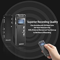 High configuration: 8GB high internal memory that store up to 560 hours of recording without the need for additional memory cards. A-B repeat throughout playback. Built-in 380mA big capacity rechargeable Li battery and can work up to continuous 40 hours with full charge.