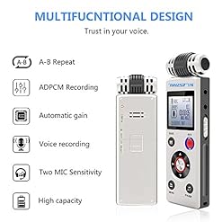 Voice Recorder More : Two ultra-sensitive condenser microphones with dynamic noise reduction means And Prime quality PCM Recording (.wav format), get clear sound,8G Memory audio recorder, could store up to 560 hours recordings file (when set recording quality at 32kpbs);