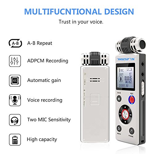 Recorder with more function : Recording files and Music, perfect for quick review recordings or learn a new music simply press the A-B button to set A-B repeat, you’ll be able to also set repeat times and repeat interval.