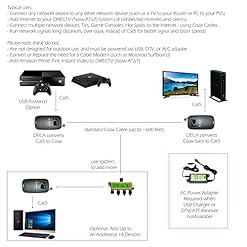 IF you might be in search of Web capability across all receivers, this DECA (Direct Ethernet Coax Adapter) kit permits you to push Web connectivity over your coax cables to all connected receivers. You should not have to run Ethernet cable during your house or business thanks to this small system add-on.