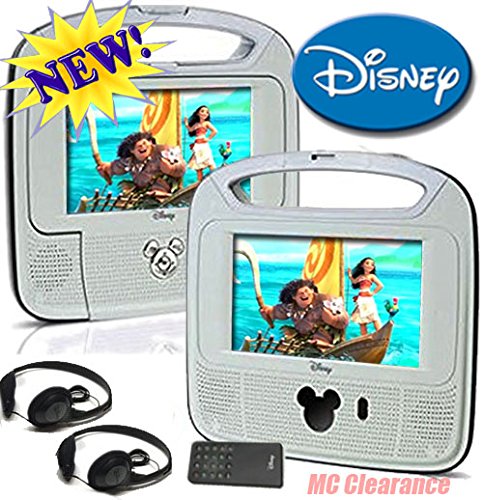 Disney 7″inch Dual Screen Widescreen LCD Mobile DVD Player D7500PDD w/ Remote Control, Car Accessories and 2 Set Headphones. Plays DVDs, Audio CDs, and More