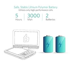 If 3 hours battery can not satisfied your require, DR.J DVD Player can. With this improved battery, we extend the play time to 5 hours. So now you do not have to worry about losing battery power whilst watching a movie.