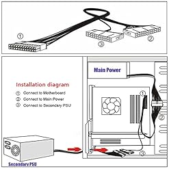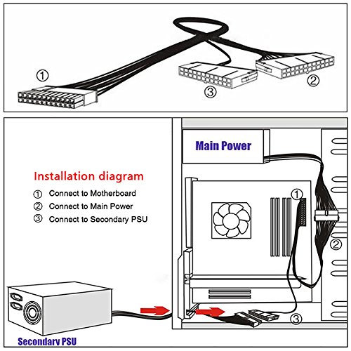 VANCOOL Dual PSU Power Supply24 Pin 20+4 pin ATX Motherboard Adapter Extension Cable-12inches