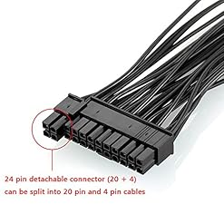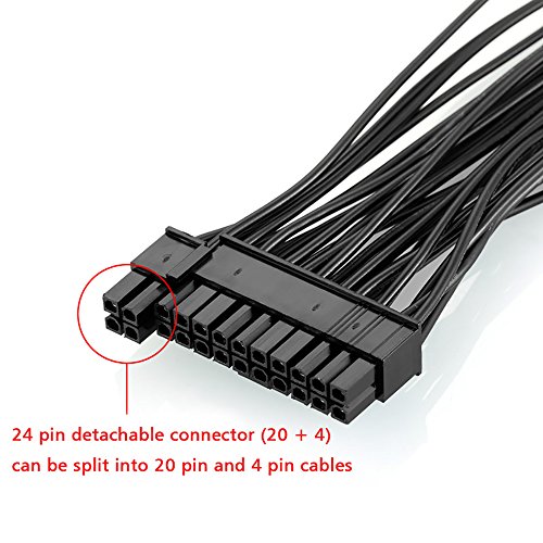 Comes with 24 pin detachable connector (20 + 4) that can be split into 20 pin and 4 pin cables.High Quality 18AWG Wire, 1x Male connector and 2x Female connectors