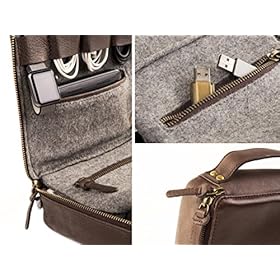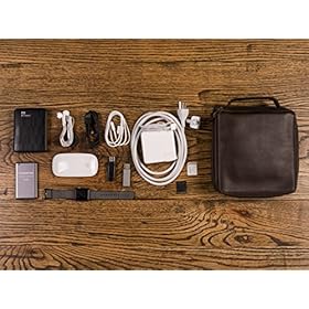 This premium electronics organizer is made of beautiful vegetable tanned buffalo leather. It measures about 8 inches x 8 inches x 2.5 inches.