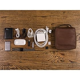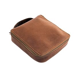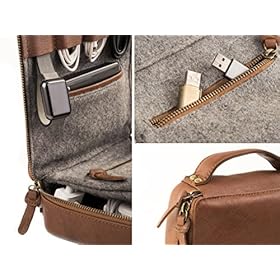 This premium electronics organizer is made of beautiful vegetable tanned buffalo leather. It measures about 8 inches x 8 inches x 2.5 inches.