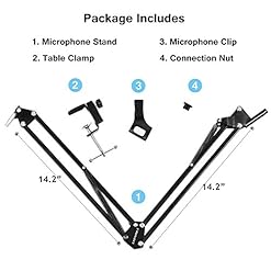 Adjustable & Folding Arm: With two 14.2″/360mm foldable arms the stand can also be extended up to 31.5″/80cm. Match with the swivel table mount and mic mount you’ll easily adjust the mic to the best position.