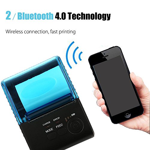☑This wireless bluetooth receipt printer built-in rechargeable 1500mAh lithium-ion battery, standby time can reach 5 – 6 days.Bluetooth 4.0, auto sleep, auto awake, save electricity.