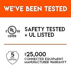 - UL listed – 5 year, $25k connected equipment warranty