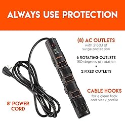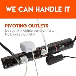 No more wasting covered up outlets. This power strip includes 6 rotating outlets that keep power adapters out of the way and two fixed side outlets for good measure.