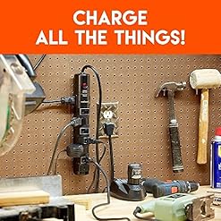 Power all the things! Featuring 8 AC plugs, you’ll protect and power up to 8 devices at a time. The 6 rotating plugs help regulate cables.