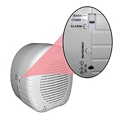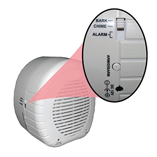 From out of doors, it sounds like you have a very unfriendly dog inside. It also can announce visitors with a chime or alarm. The radar sensitivity is adjustable from 10-20 feet. Volume could also be adjustable. Stands 9 inches tall. Powered by AC power supply. Also takes 8 AA back-up batteries (not included) in case of power loss. Unit needs to face in the direction you need to detect motion. Detection is limited from the sides and rear. The included remote keep watch over permits you to Arm and Disarm the system, in addition to set off a Panic alarm