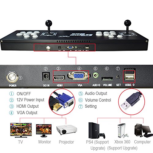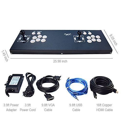 PLUG & PLAY: This Arcade bundle includes power adapter, power cord, VGA cable, USB cable, copper HDMI cable for simple plug and play. Beef up 2 players gaming.