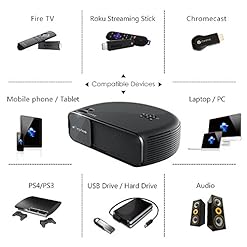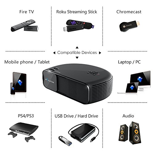 STRONG CONNECTION: Make stronger HDMI/VGA/AV/USB, ELEPHAS CL760 Projector enables to hook up with Amazon Fire TV Stick/ Roku Streaming Stick/ Chromecast/ Laptop/ Blue-Ray DVD player/ PS3/ PS4/ Xbox/ TV box by the use of HDMI input; Connect to PC by the use of VGA jack; Hook up to headphone/ outer speakers by the use of Audio port; Insert U-disk/ hard disk device into USB slot. Adapters are required if you connect the projector to a Ipad, Iphone or other tablets and smartphones.
