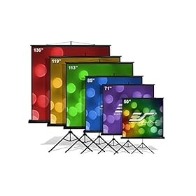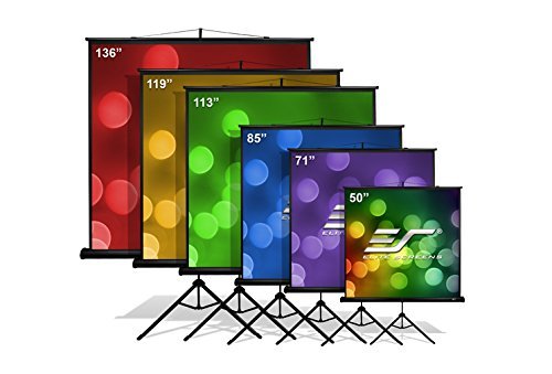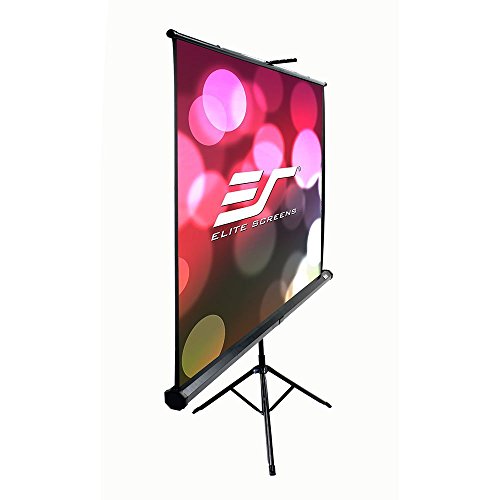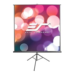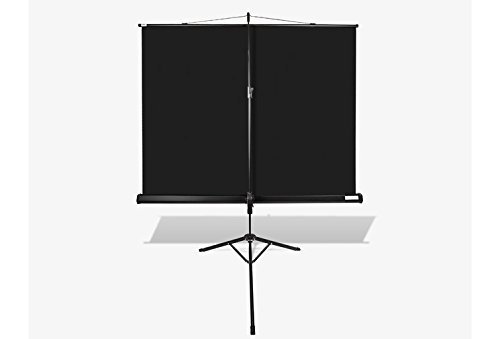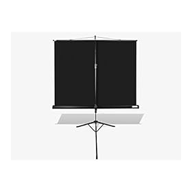 Lightweight and portable tri-pod style projection screen features telescopic support that allows for a variety of height/aspect ratio settings.
