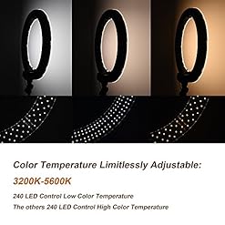 18” Bi-color Dimmable LED Ring Light: 18” Diameter, 480 LED, 55W Power, Dimmable (1% – one hundred%), Limitlessly Adjustable Color Temperature (3200K-5600K).