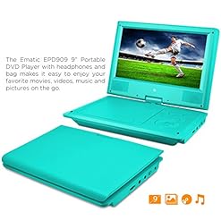Ematic Portable DVD Player with 9-inch LCD Swivel Screen, Travel Bag and Headphones, Teal