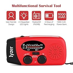 Emergency Weather Radio [2018 Upgraded] Solar Hand Crank AM FM NOAA Radio Portable with LED Flashlight, All Weather Radio with 1000mAh for iPhone/Smart Phone–By Iyzer (Red)