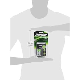 Includes 2 AA Energizer NiMH batteries with 1300 mAh charge capacity, pre-charged and ready to use