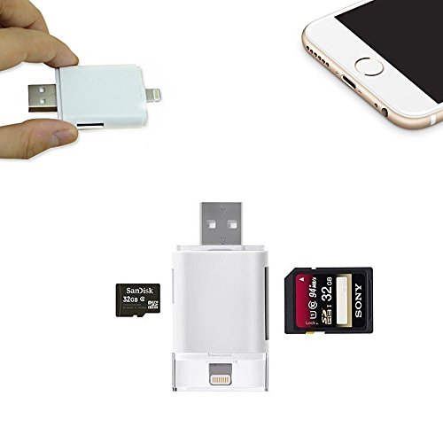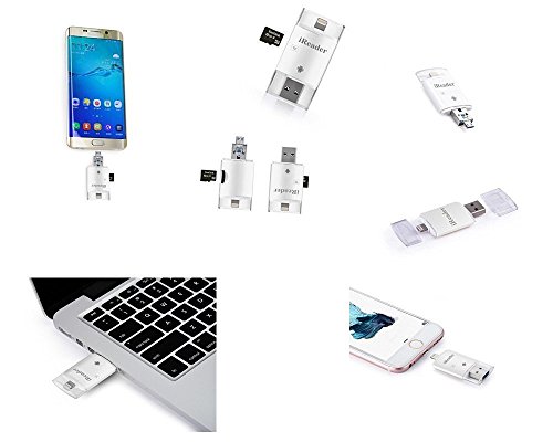 Feature: * Memory Card Reader with OTG(Android phone must with OTG function) * Backup your important Photos, Music, Videos, and Contact list * Supporting online software upgrades * Portable for business(convenient for file work) * Secured file encryption for private file * Document viewer for all major file formats * Support SD and TF card(NOT INCLUDE) * Free App from App store for communication between your Devices * Securely store and share digital contents such as movies, pictures, and music from your phone Compatitable for: *Cellphone: iPhone 7/iPhone 7 Plus/iPhone 6s/iPhone 6s Plus/iPhone 6/iPhone 6 Plus/iPhone 5s/iPhone 5/iPhone 5c/all the android phones with OTG function *Tablet: iPad Pro/iPad Air 2/iPad Air/iPad 4/iPad mini *Media player: iPod Touch 6/iPod Touch 5 *PC: With OSX, Windows, Linux operation system Compatible with these formats: .mov .mpg .swf .vob .wmv .rmvb .avi .mp4 .mkv .flv .gif .rm .mp3 .wav .m4a .jpg .gif .tif .png .bmp .txt .doc .ppt .xls .pdf support Note: Please download the app named “iDiskk Pro” from app store(IOS system). Android Smartphones do not download app,but the phone need with otg function and when you connect the card reader, please enter to the phone “file manager” to operate. Precaution Notice: * Please do not disconnect card reader during file transfer. * Please do not connect both side of card reader at the same time. * Please do not use card reader as cable. * If iOS device pops up a message said “this accessory is not optimized for this phone”, just disconnect and reconnect again. * Please insert your memory card into the device before connect to your iphone or ipad. If your phone case is thick, please take it off before using the device.
