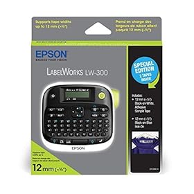 Everything you need to create personalized iron-on labels – includes a LabelWorks LW-300 printer, 1/2″ (12mm) Black-on-Blue iron-on cartridge and also a 1/2″ (12 mm wide) Black-on-White adhesive label sample cartridge
