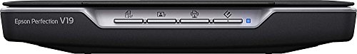The inexpensive, compact Epson Perfection V19 offers Simple scanning and sharing. Whether you are scanning photos or documents, the V19 delivers 4800 x 4800 dpi resolution1 and fast speeds. Capture letter-sized documents in just 10 seconds2. One-touch buttons make scanning in an instant to computers, emails or PDFs easy. Scan and share on Facebook, and cloud services and products such as Evernote. Just one USB connection is needed for power and connection to the pc.