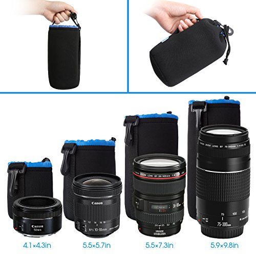 【DIMENSIONS】 small: 3.1″ X 4″; medium: 4″ X 5.5″; large: 4″ X 7.8″; extra large: 4″ X 9.5″ WIDELY USED: perfect lens case protect your lens from shock, bump, dirt, etc