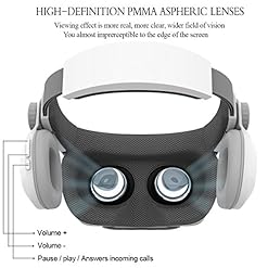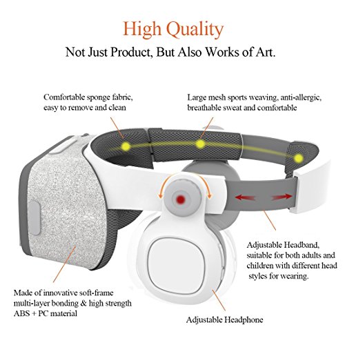 ★ REVOLUTIONARY OPTICAL SYSTEM: This combined with nanoscale process 42mm HD optical PMMA aspheric lenses and large field of view ( FOV up to 120°). Immerse yourself in a world of virtual reality. Easy adjustment of pupil distance (PD) and focal distance (FD) bring you enjoyable experience without wearing glasses, catering up to 600 degree of shortsightedness.