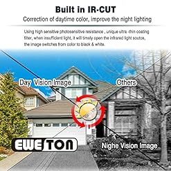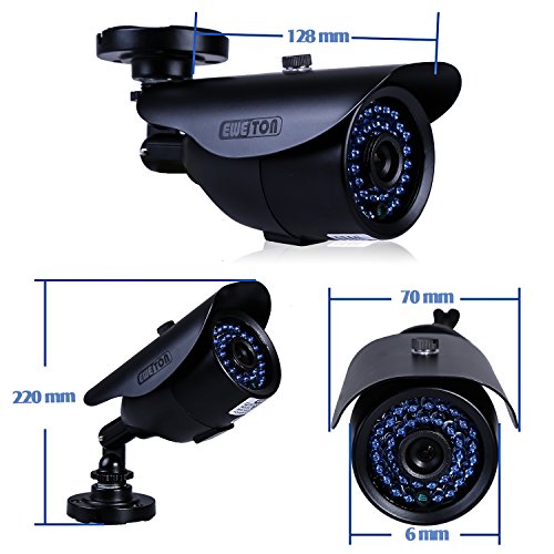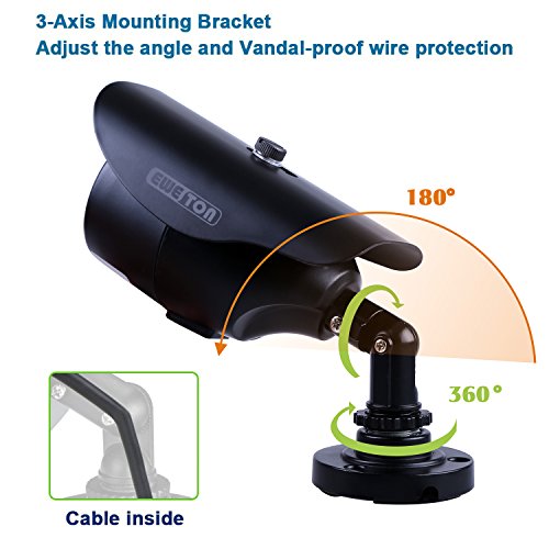 EWETON 1/3″ 960H 1000TVL CCTV Home Surveillance Camera 3.6mm Lens 36PCS Infrared LEDs IR Cut 100ft Night Vision Indoor Outdoor Weatherproof Security Camera (Metal Housing Black)