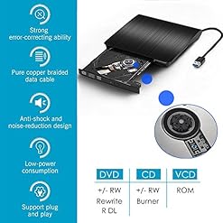 USB 3.0 TECHNOLOGY: This ultra slim DVD burner adopted USB3.0 technology. High speed USB 3.0 external DVD drive for laptop with low impedance & anti-interference ability, bring you faster and smooth experience throughout movies, musics or burning.It allows faster data transfer speed. It’s also compatible with USB2.0 and USB1.0.