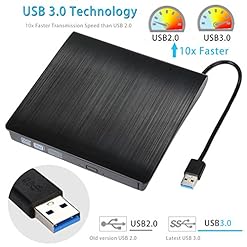 USB 3.0 Interface: External DVD/CD drive comes with standard USB 3.0 transmission which provides faster data transfer rates for you, up to 5Gbps. Plug and play, you can able to start watching movies within a few minutes. Containing Pure-copper-knitted-net tech leads to smaller resistance, stronger shielding capability, more stable data transmission