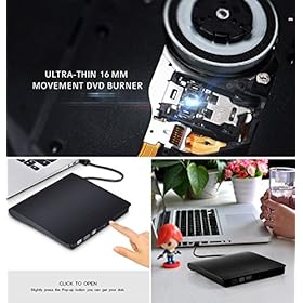 USB 3.0 TECHNOLOGY: This ultra slim DVD burner adopted USB3.0 technology. High speed USB 3.0 external DVD drive for laptop with low impedance & anti-interference ability, bring you faster and smooth experience all over movies, musics or burning.It allows faster data transfer speed. It is also compatible with USB2.0 and USB1.0.