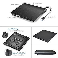 COMPACT DESIGN: Made with premium wire drawing material, enough fashionable and scratch-proof exterior. This CD/DVD driver is slim, lightweight, compact, portable. The CD/DVD drive and the USB cable are combined in one, embedded USB cable design, easy for storage.