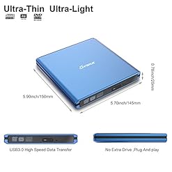 External CD DVD Drive USB 3.0, Dansrue Portable Ultra-Slim CD-RW DVD-RW Rewriter Burner Player for Laptop Apple Mac Macbook Pro PC Windows Vista Linux, Blue