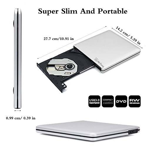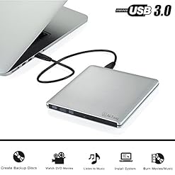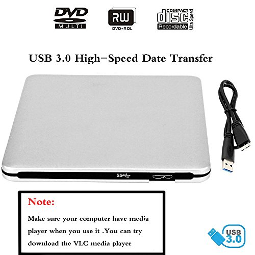 ADVANCED BURNING TECHNOLOGY :Adopted unique intelligent burning technology, you can burn your disc or interrupt recording at your ease. Pop-up button and disc tray design make it convenient to read or write discs.Adopted advanced 9.5mm internal chip, DVD-RW burner supports playing music, movies or copying/burning movies and music to DVD or CD. Download player software(VLC,GOM or MPC-HC) to play DVD if it can’t play dvd