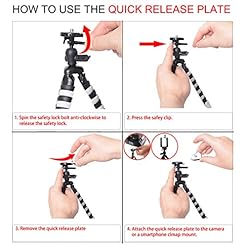 CAPTURE BETTER PERSPECTIVES: 360 degree rotation ballhead ensures 360 degree shooting perspective. Quick Release Plate for DSRL, easy to assemble and remove your camera. Universal 1/4″ screw adapter allows a variety of cameras/ cameras / DSLR camera/ camcorder/ rugged camera , such as Sony / Canon / Nikon / Penax / Olympus/ Kodak / Fujifilm