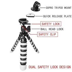 MORE THAN A TRIPOD: Octopus Style tripod, it is a versatile mini tripod, adjustable flexible & wrappable tripod legs, which perfectly embodies both maximum flexibility and sturdiness. It’s not just an excellent tripod on flat surface, you can also wrap it anywhere you can think of, like lampposts, fence posts, tree limbs, chairs, doorknobs etc. It’s a perfect grip when folded as well. Folded Height : 8″
