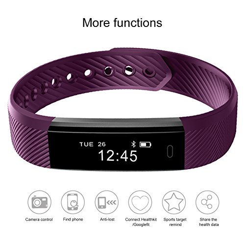 This model IP115 smart tracker records steps, distance, calories burned and active minutes,At night,it tracks your sleep and set a silent alarm.It also has call or text notifications on display.
